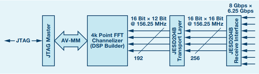 图5B. 面向Altera系统在环的通道选择器JESD204B输入和Avalon存储器图