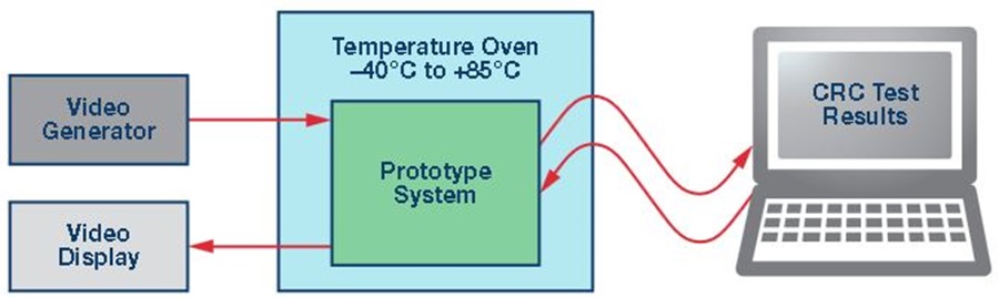 通常在这种类型的测试中,将原型系统放置在温度可控的烘箱中,该烘箱可在产品的指定温度范围(例如–40°C至+ 85°C)上循环进行数千次迭代。然后观察系统的输出,以确保在整个温度,视频频率和视频模式范围内稳定。使用CRC测试,可以很容易地自动执行此测试,并将其设置为无限期运行。