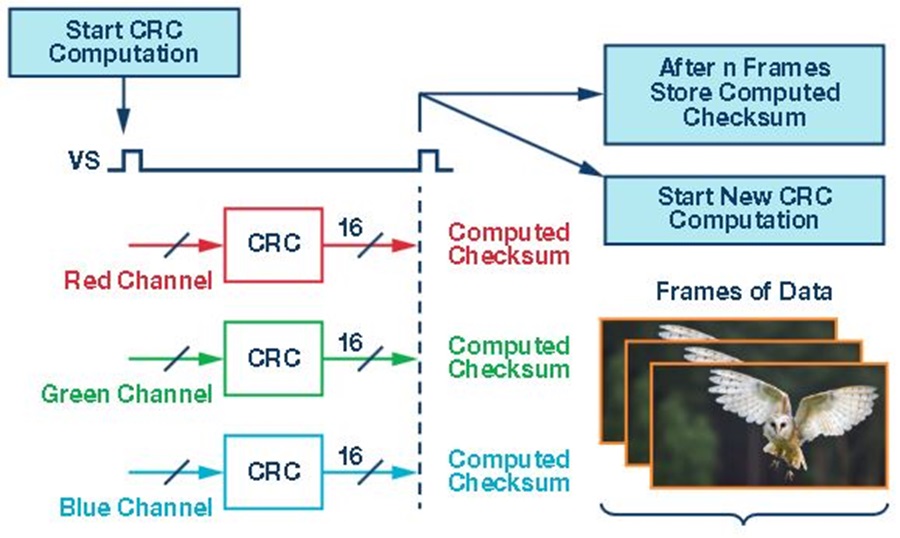 在分立的独立终端测试设备中实施CRC可以降低视频产品的BOM成本,但需要在独立设备上进行投资。但是,它确实提供了能够测试整个系统稳定性的好处-嵌入到视频信号链中的CRC测试解决方案所提供的覆盖范围取决于该测试解决方案在信号链中的位置。位于信号链起点附近的CRC测试可能会提供低到中等的覆盖范围;位于信号链末端附近的CRC测试可能会提供中等到高水平的覆盖范围。