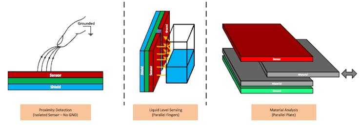 使用电容进行接近感应和液位感应的原理是相同的。当两个平行的导电板以固定距离放置时,就会产生电场。在这些板的边缘,会产生“边缘”效果。这是电容式传感应用的关键。