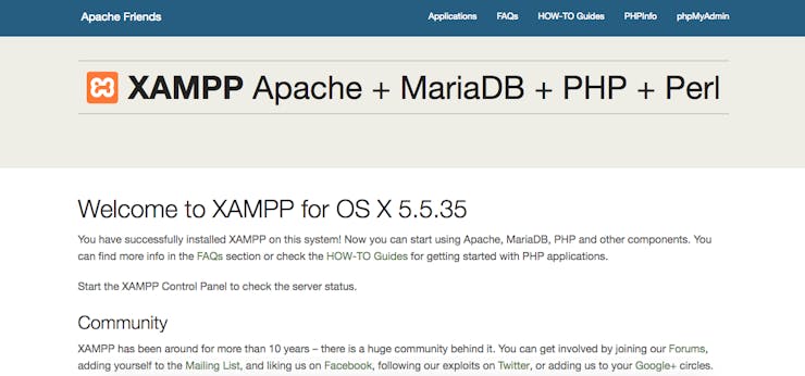 安装 XAMPP 后,请按照 wikihow 教程中的说明从 xampp 控制面板启动 xampp apache/mysql 服务。