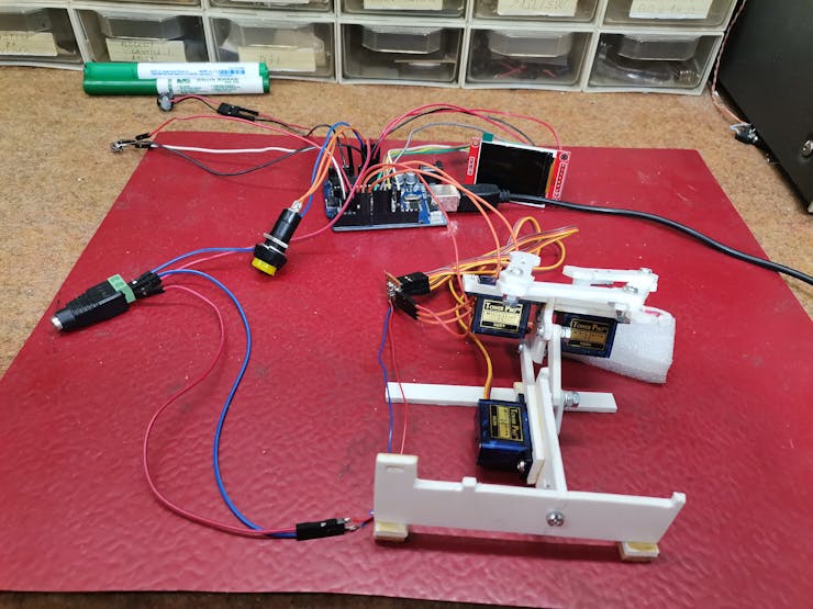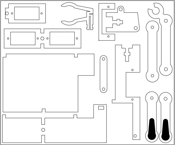 与原始设计不同,我用一块 3 毫米厚的 PVC 板制作了机械部分,并用手术刀进行了加工。