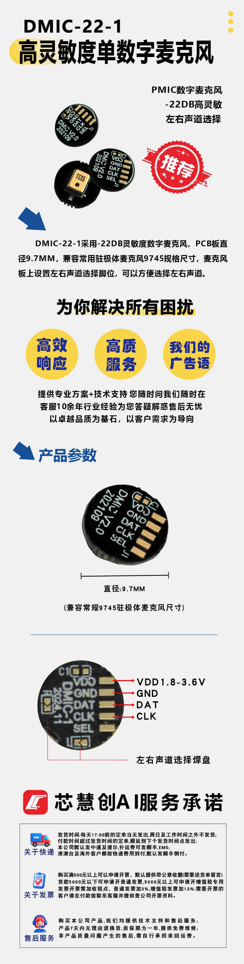 高灵敏度单数字麦克风板DMIC-22-1
