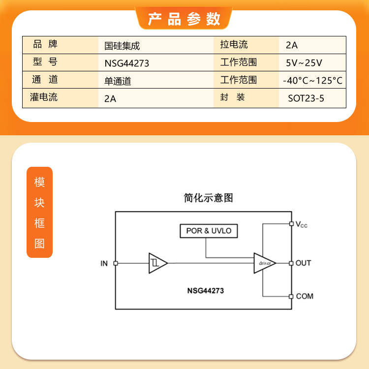国硅代理商单通道2A低侧同相栅极驱动芯片NSG44273兼容IRS44273