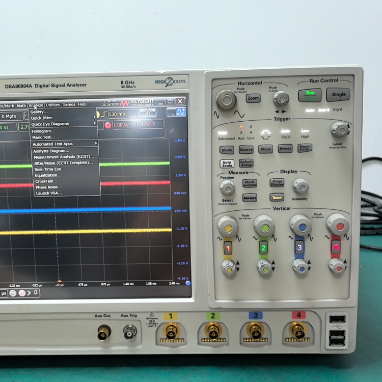 DSA90804A 是是德科技(原安捷伦)Infiniium 系列的高性能数字信号分析仪(示波器),主打高速串行信号的时域 / 频域分析,是 10G 以太网、PCIe 等高速数字系统测试的核心设备。